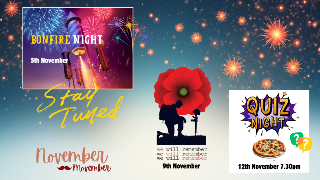 We mark all the big seasonal celebrations – Bonfire Night, Christmas, Easter, you name it! – and we screen major sports like the Six Nations and World Cup.