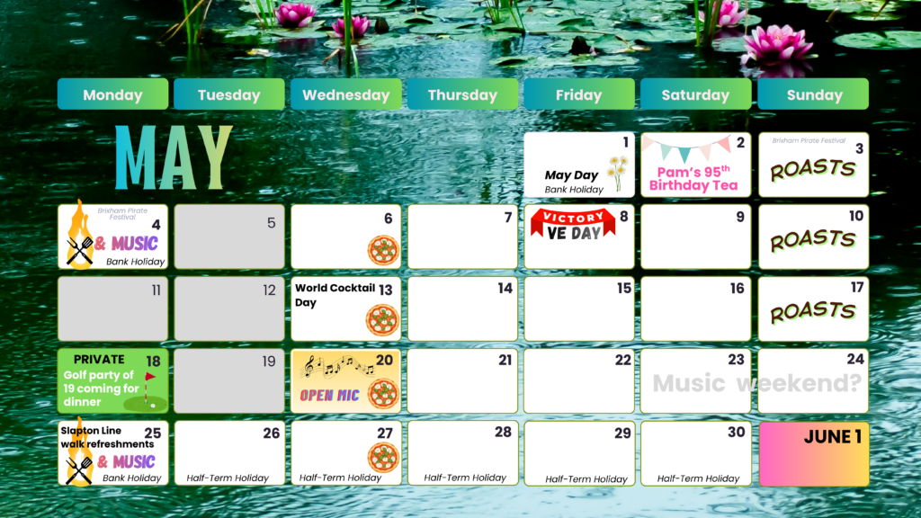 Here’s our monthly calendar overview and event promotions…